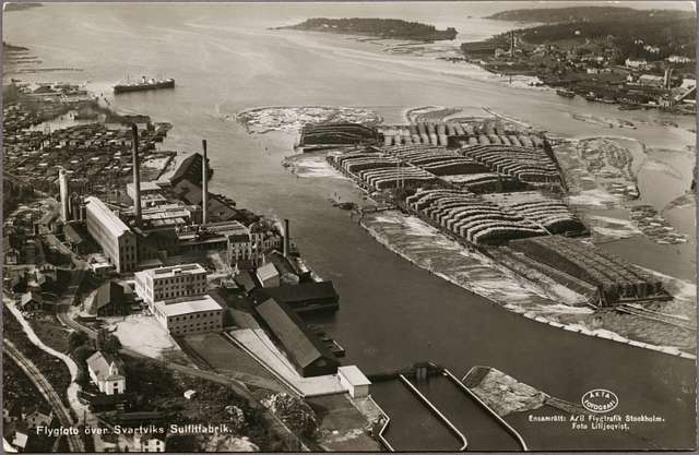 Flygfoto över Svartviks sulfitfabrik. Tid = ?